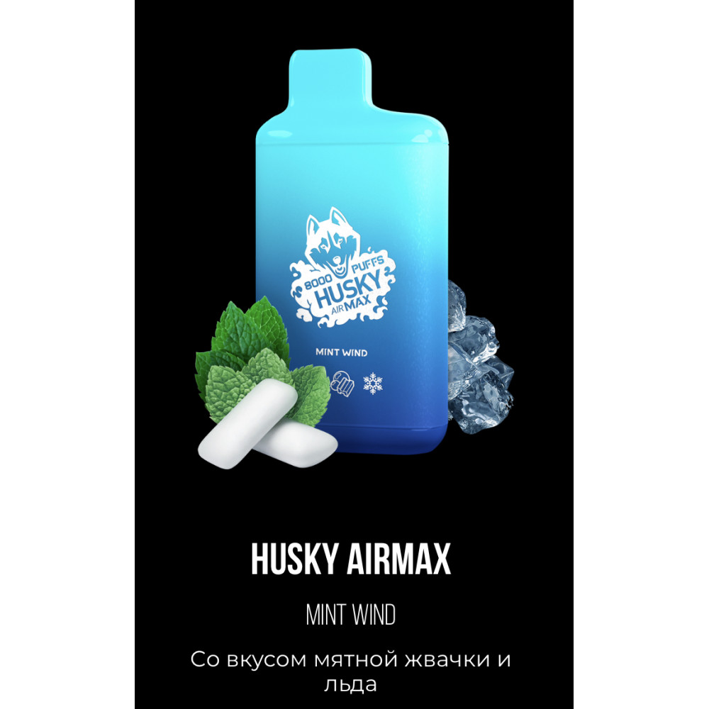 Электронная сигарета Хаски Аир Макс Мятная Жвачка со Льдом (Husky Airmax Mint Wind) на 8000 затяжек